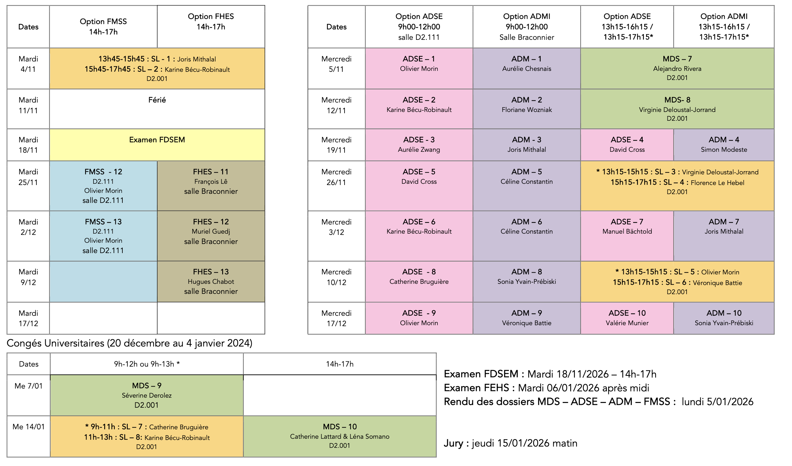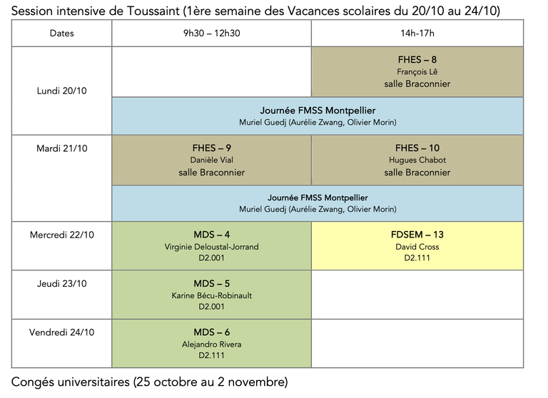 Les cours MDS indiqués correspondent aux séances de méthodologie à Lyon. Les dates de ces cours peuvent être différentes à Montpellier.